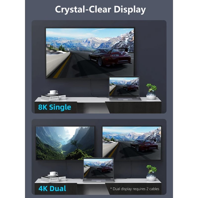 Met deze kabel kun je tot wel 8k beeldresoluties bij 60Hz bereiken. Je kunt ook tot 6 Thunderbolt-apparaten aansluiten, zoals dockingstations, harde schijven, externe grafische kaarten en beeldschermen. Geniet van scherpe beelden en snelle gegevensoverdracht met een snelheid van 40Gbps. Dit is handig voor bijvoorbeeld eGPU’s en dubbele 4K beeldschermen.