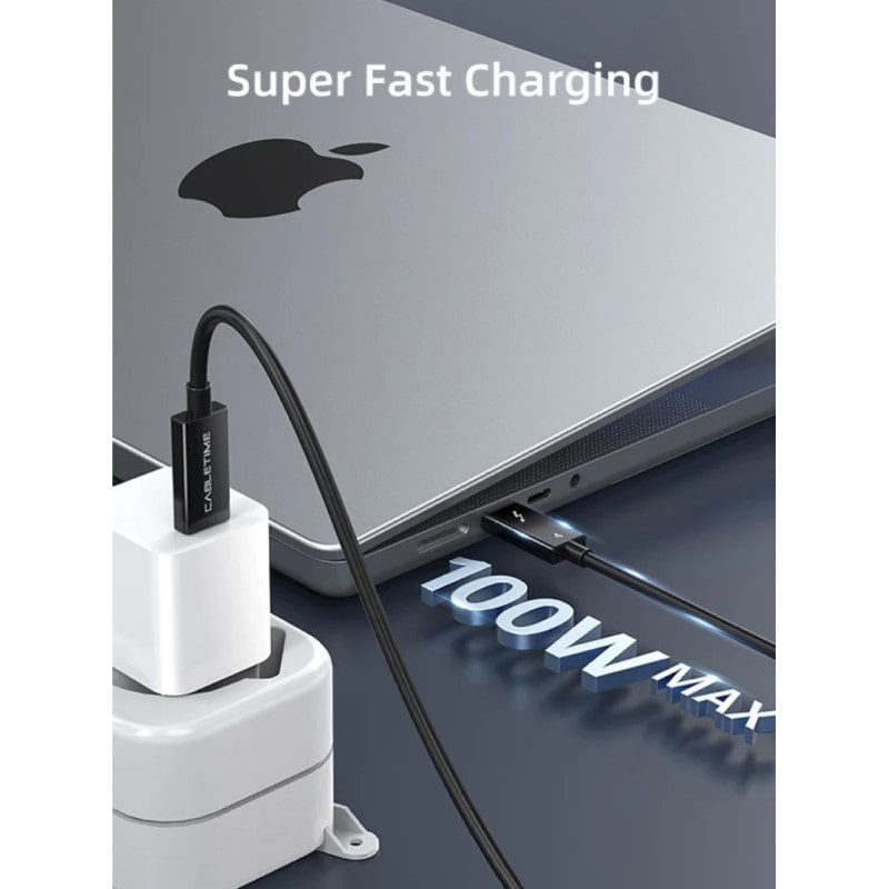 Met de Cabletime Thunderbolt 4-kabel heb je een krachtige alles-in-één kabel in handen. Deze kabel ondersteunt tot 100W aan stroom, razendsnelle gegevensoverdrachtssnelheden van 40Gbps en indrukwekkende 8k beeldresoluties bij 60Hz. Hij werkt niet alleen met Thunderbolt 4, maar ook met Thunderbolt 3, USB4 en USB 3.1 Gen 1, Gen 2, en DisplayPort Alt Mode. Dit maakt hem ideaal voor gebruik met MacBook Pro en nog veel meer.